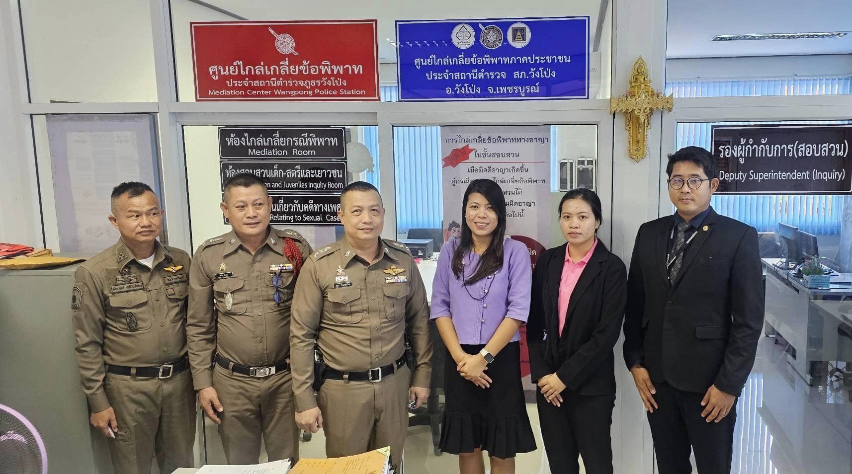 งานสอบสวนต้อนรับคณะกรรมการมาตรวจประเมินศูนย์ไกล่เกี่ยข้อพิพาท 25 มกราคม 2567 โดย adminwongpong / ข่าวประชาสัมพันธ์ วันที่ 25 มกราคม 2567 เวลา 14.30 น.พ.ต.ท.เมธา รัตนวรุณรัตน์รอง ผกก.(สอบสวน)สภ.วังโป่ง, พ.ต.ท.พชร จันคีรีสว.(สอบสวน)สภ.วังโป่ง และ ร.ต.อ.สังวาลย์ ศรีบัวรินทร์ รอง สว.(สอบสวน)สภ.วังโป่ง ได้ต้อนรับคณะกรรมการมาตรวจประเมินศูนย์ไกล่เกี่ยข้อพิพาท จากสำนักงานยุติธรรมจังหวัดเพชรบูรณ์ FacebookFacebookXXLINELine
