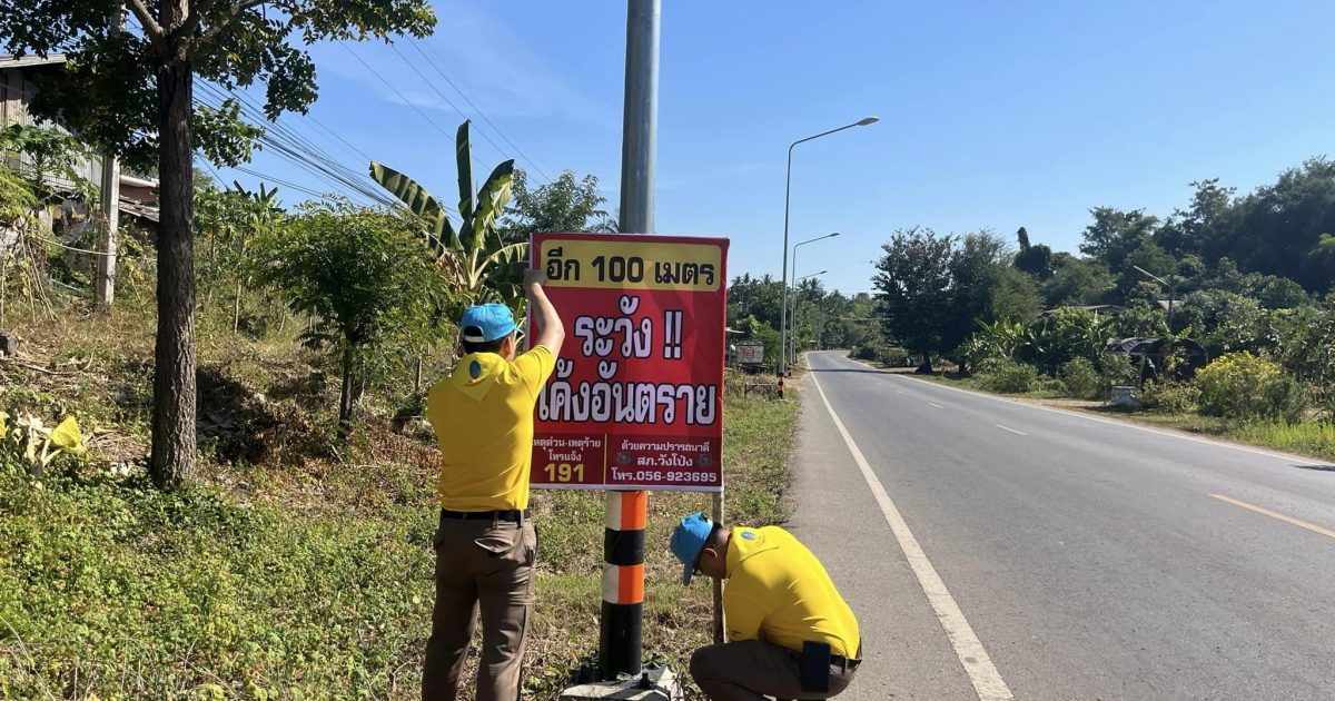 จิตอาสาติดตั้งป้ายเตือนอันตรายจุดเสี่ยง