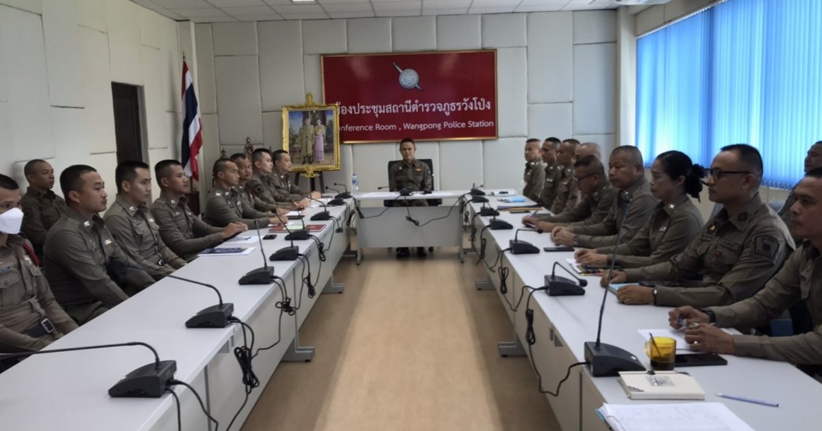 พ.ต.อ.ประมุข ปิ่นปลื้มจิตต์ ผกก.สภ.วังโป่ง และข้าราชการตำรวจ สภ.วังโป่ง ได้ประชุมบริหารประจำเดือน