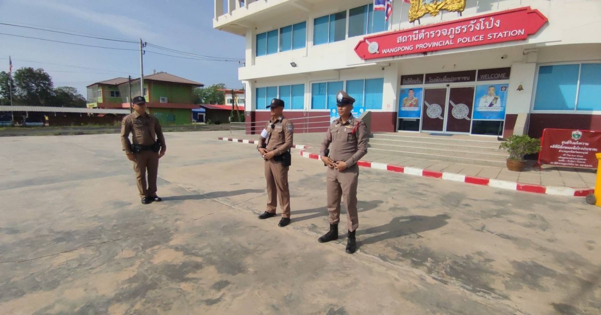 ร.ต.ท.สิทธิศักดิ์ ถือคำ รอง สว.(ป.)สภ.วังโป่ง ร้อยเวร 20 เรียกแถวสายตรวจรถยนต์ สายตรวจรถจักรยานยนต์ สวดมนต์ไหว้พระ กล่าวคําปฏิญาณ อุดมคติตำรวจ อบรมชี้แจงมอบหมายภารกิจ ก่อนปล่อยแถวออกปฏิบัติหน้าที่ในเขตฯ ดังนี้