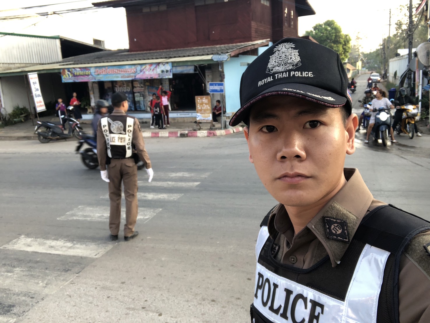 อำนวยความสะดวกด้านการจราจร หน้าโรงเรียนอนุบาลวังโป่ง