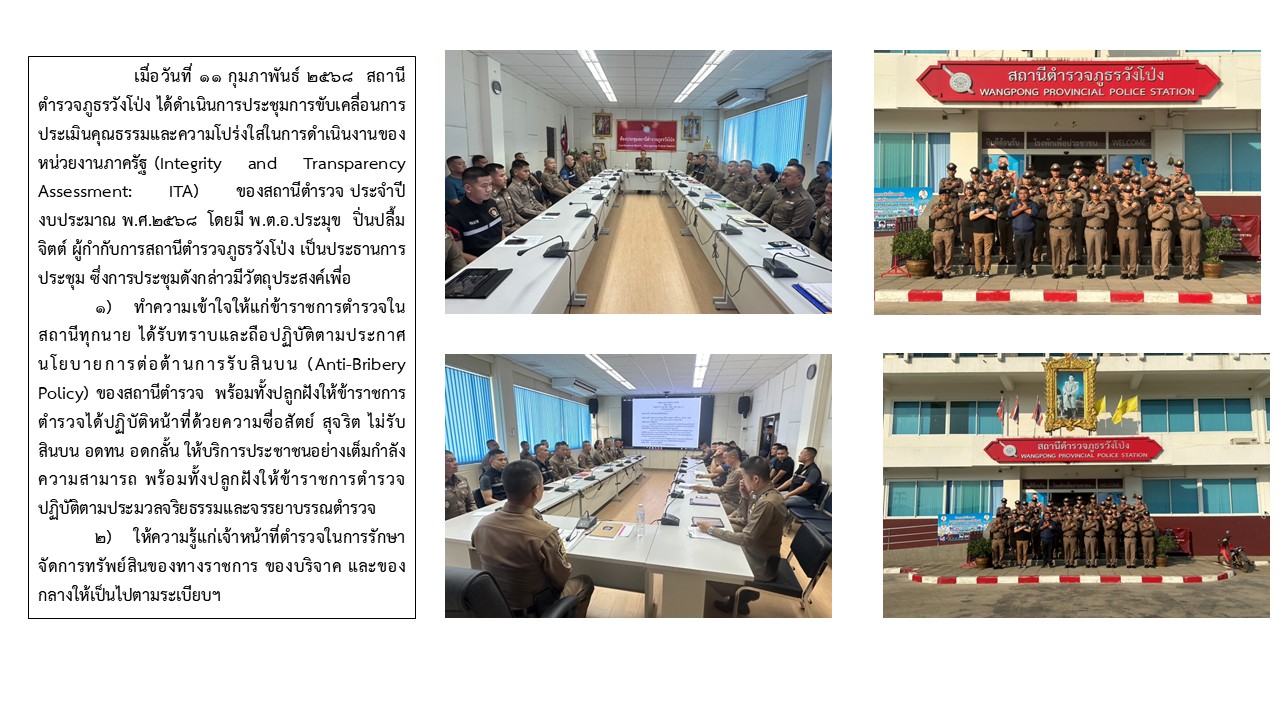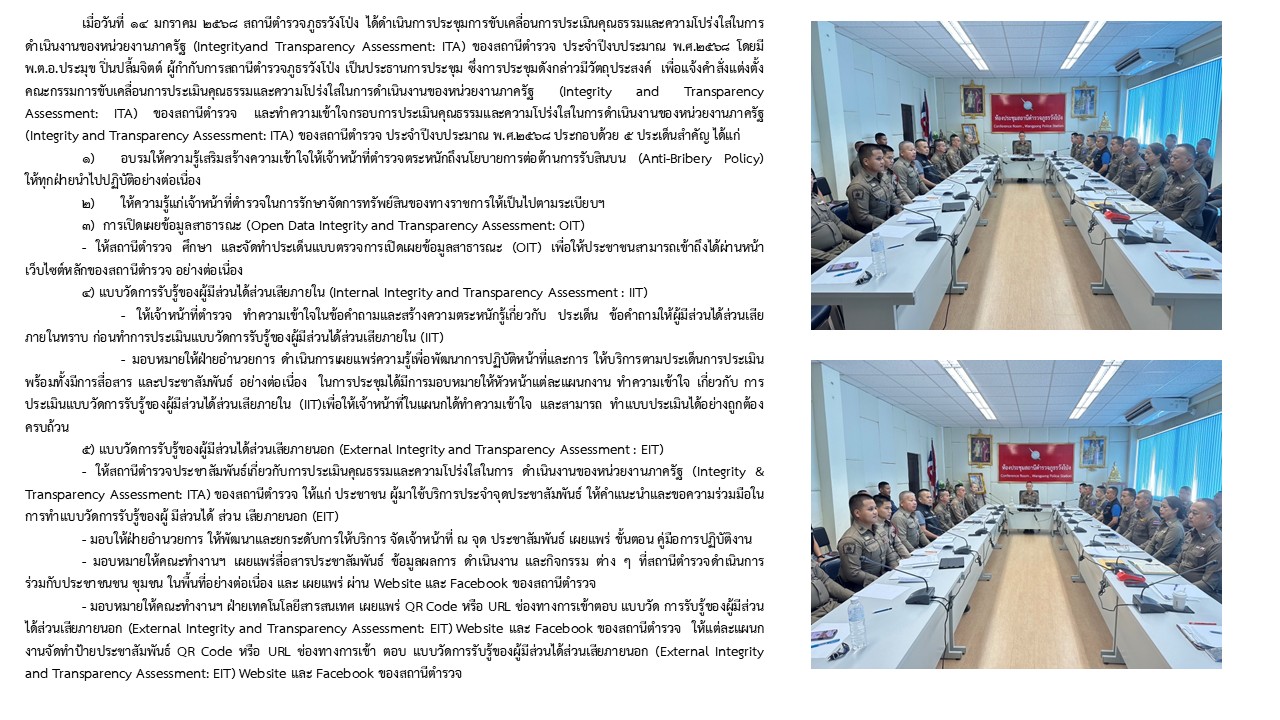 Previous Next วันนี้ 19 มกราคม 2568 เวลา 09.00 น. ด.ต.วรวุธ ทุ่งเกษม ผบ.หมู่(ป.)สภ.วังโป่ง และ ส.ต.