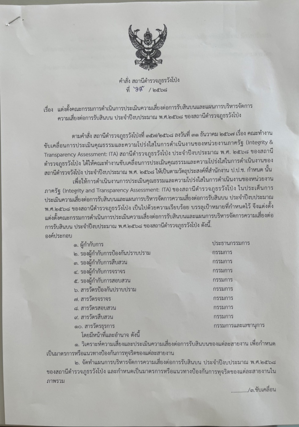 O20.การประเมินความเสี่ยงต่อการรับสินบน 2568
