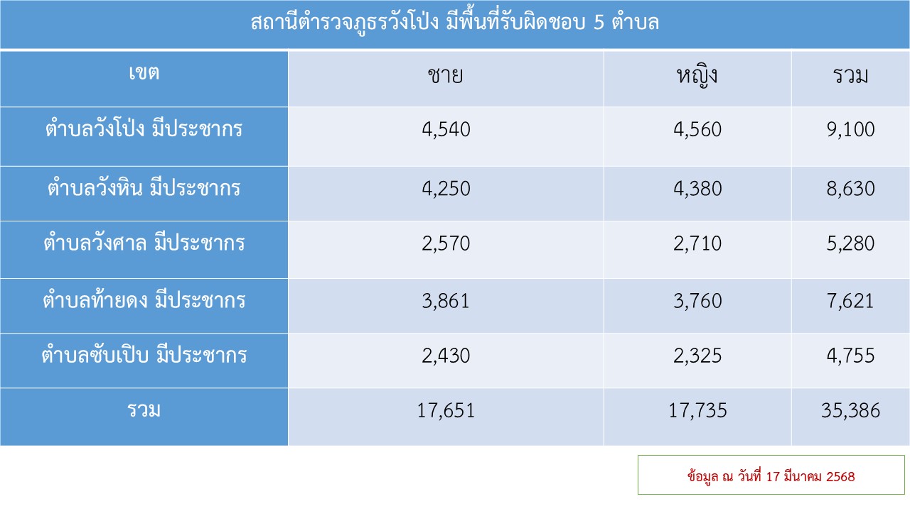 ข้อมูล ณ วันที่ 20 มีนาคม 2568